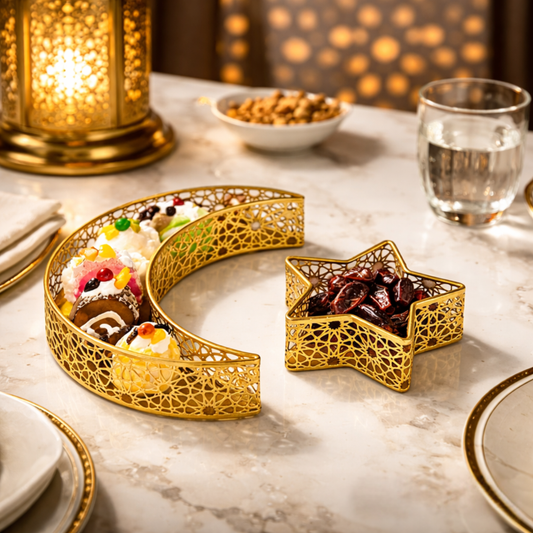 Crescent & Star Ramadan Serving Tray – Eid Table Decor – Islamic Home Accent